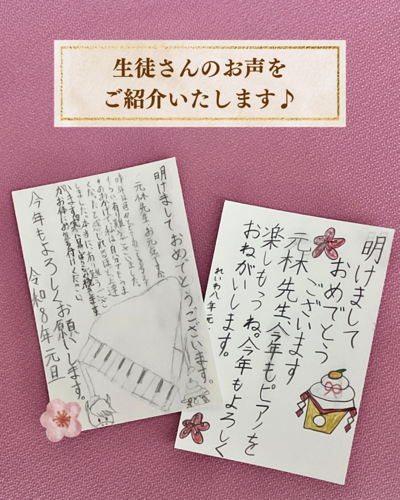 今年も生徒さん達から心のこもった手書きの年賀状をいただきました🌸
